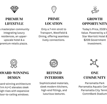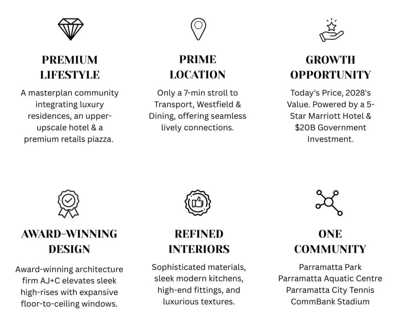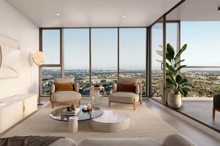 The residential apartments are designed with style and sophistication, featuring elegant, durable materials and low-maintenance flooring for ease of living. Residents can enjoy stunning views of the Parramatta skyline, the Blue Mountains, and Sydney CBD.